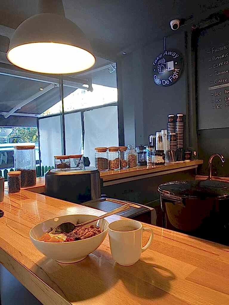 FIT in FIGHT Kafemize Hoş Geldiniz! Antrenman öncesi ve sonrası enerji depolamak için kafemizde, sağlıklı beslenme ve sporcu ihtiyaçlarınıza yönelik geniş bir yelpazede taze ve besleyici ürünler sunuyoruz.